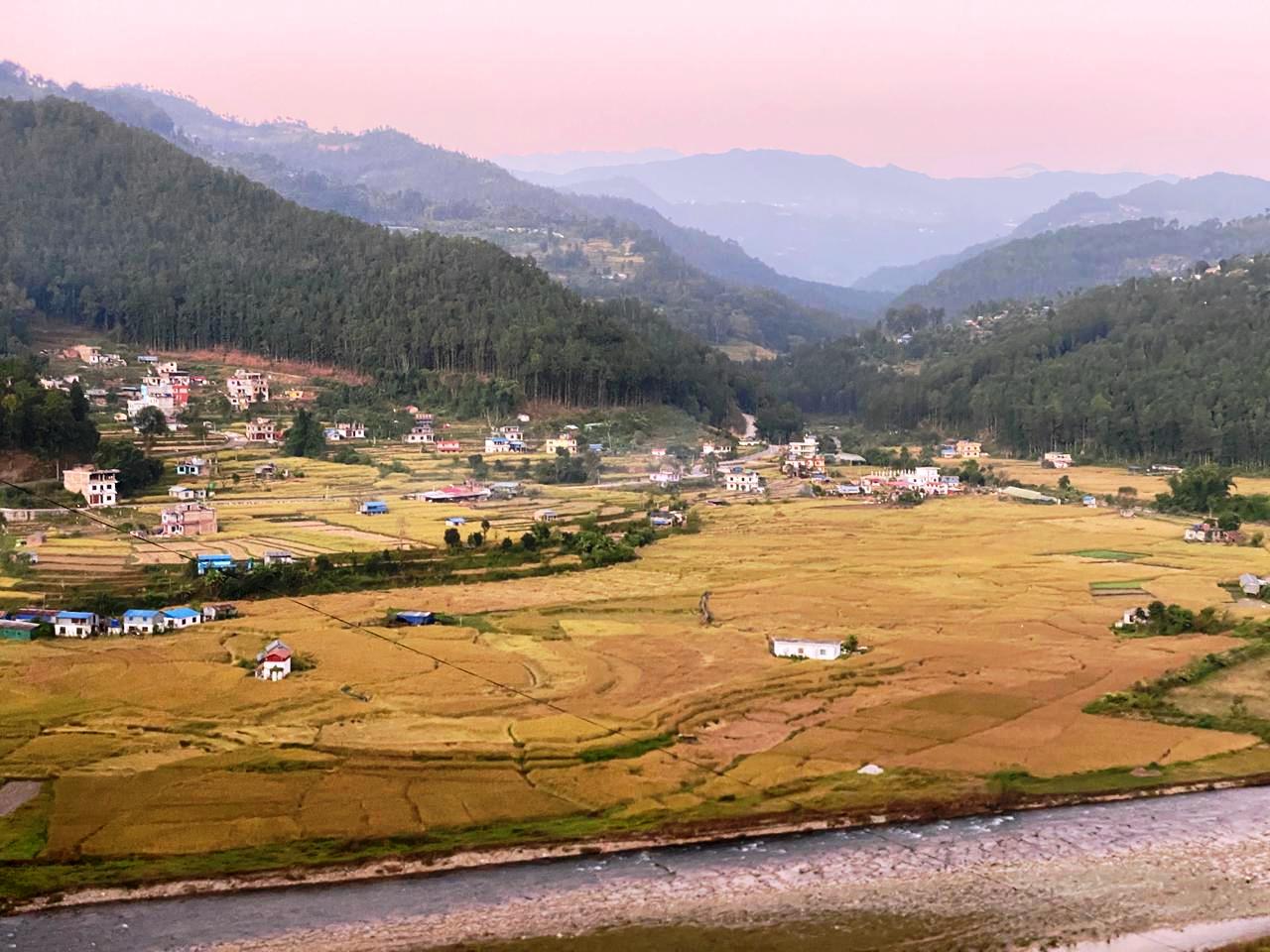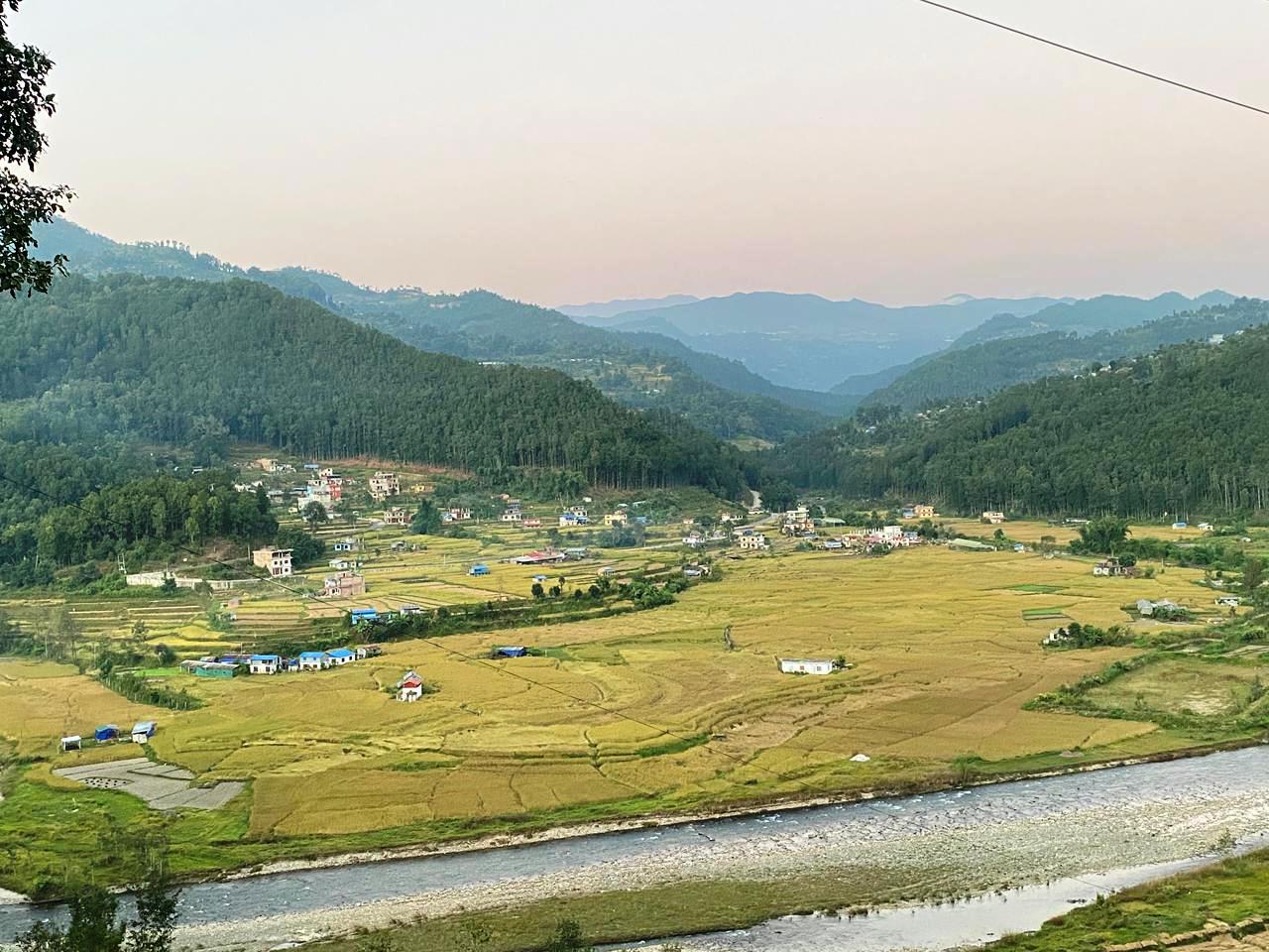 नीलकण्ठ नगरपालिका - १२ कुडुले फाँटमा लहलह झुलेर पहेलपुर बनेको धानको फाँट,धान पाकेपछि अहिले यहाँका किसान भित्र्याउन व्यस्त छ ।