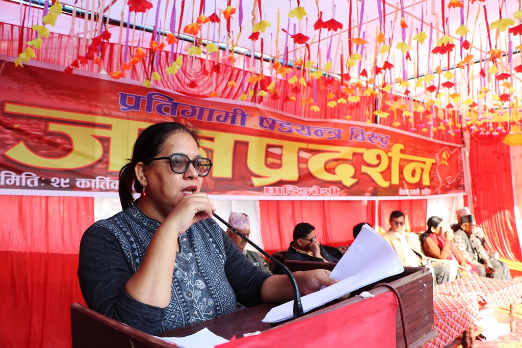 प्रदर्शनपछि उपाध्यक्ष अर्जुन कुमार श्रेष्ठ (गोर्खाली), सचिव राधिका सापकोटाले सम्बोधन गर्नुभयो । कार्यक्रममा जिल्ला कमिटी, जनवर्गीय संगठन, युवा,स्थानीय तहका नेता, कार्यकर्ता, व्यापारी, महिला समूह तथा सर्वसाधारणको उल्लेख्य सहभागी थिए ।