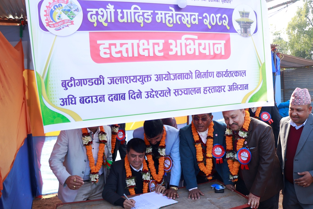 महोत्सवको नेपाल उद्योग वाणिज्य महासंघका अध्यक्ष चन्द्रप्रसाद ढकालले एक विशेष समारोहका बिच उद्घाटन गर्नुभयो । उद्घाटन समारोहमा बोल्दै प्रमुख अतिथि अध्यक्ष ढकालले मुलुकको अर्थतन्त्रलाई बलियो बनाउन निजी क्षेत्रको भूमिका निर्णायक रहेको बताउनुभयो । वर्षौं देखि चर्चामा रहेको बुढीगण्डकी जलविद्युत आयोजना जसरी पनि बन्नैपर्ने आयोजना भएको भन्दै सरकारलाई तत्काल निर्णय गरेर काम अघि बढाउन आग्रह गर्नुभयो । “बुढीगण्डकी आयोजना राष्ट्रिय गौरवको आयोजना हो, यो आयोजना बनेन भने देशको ऊर्जा र औद्योगिक विकास नै प्रभावित हुन्छ,” अध्यक्ष ढकालले भन्नुभयो । पछिल्लो समय देखिएको आर्थिक मन्दीले निजी क्षेत्रलाई गम्भीर रूपमा प्रभावित पारेको उल्लेख गर्दै अर्थतन्त्र चलायमान बनाउन सरकारको नीतिगत सहयोग अपरिहार्य रहेको बताउनुभयो । त्यसै अवसरमा बुढिगण्डकी जलाशयुक्त आयोजनाको निर्माण कार्य अघि बढाउन दबाब दिने उद्देश्यले महोत्सव अवधिभर हस्ताक्षर अभियान सञ्चालन सुरु गरिएको छ । जसमा प्रमुख अतिथि ढकालले हस्ताक्षर गर्दै ऐक्यबद्धता जनाउनुभयो ।