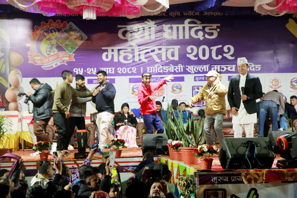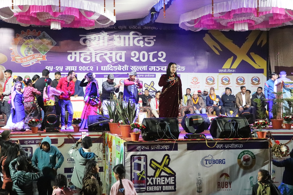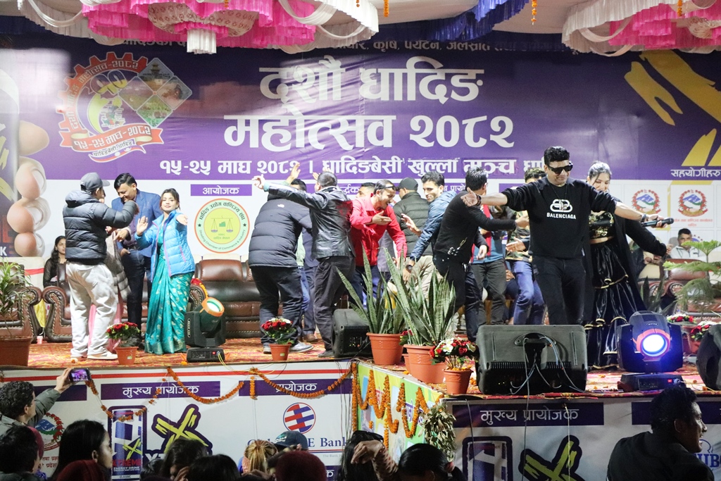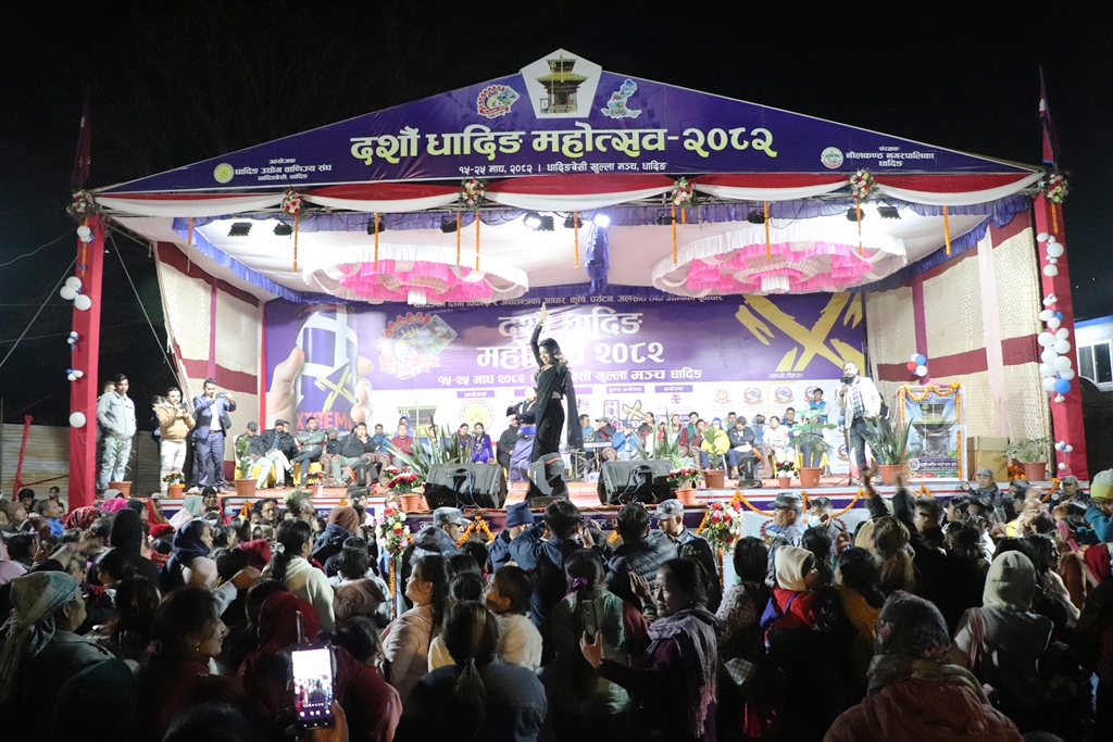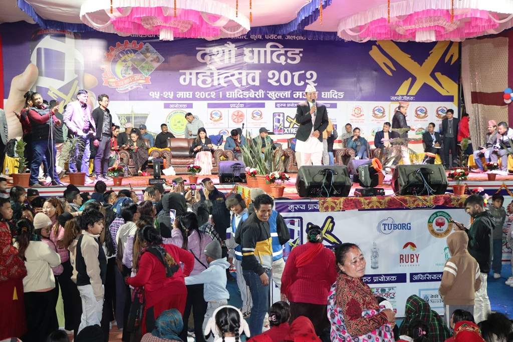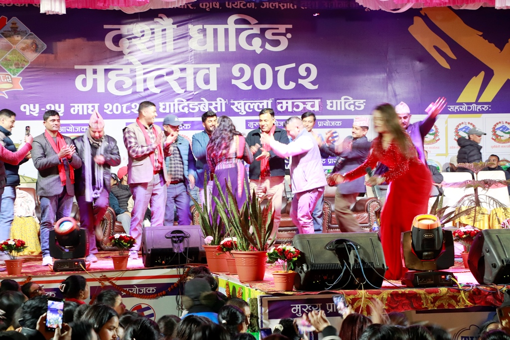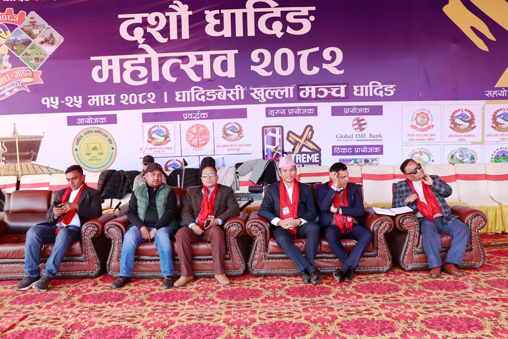 ‘धादिङको दिगो विकास र अर्थतन्त्रको आधार, कृषि, पर्यटन, जलस्रोत र उद्योगको पूर्वाधार’ भन्ने मूल नाराका साथ माघ १५ गतेदेखि सुरु भएको महोत्सव आज माघ २५ गते धादिङको नीलकण्ठ नगरपालिका–३, धादिङबेसीको खुल्लामन्चमा सभ्य रुपमा समापन भएको छ ।