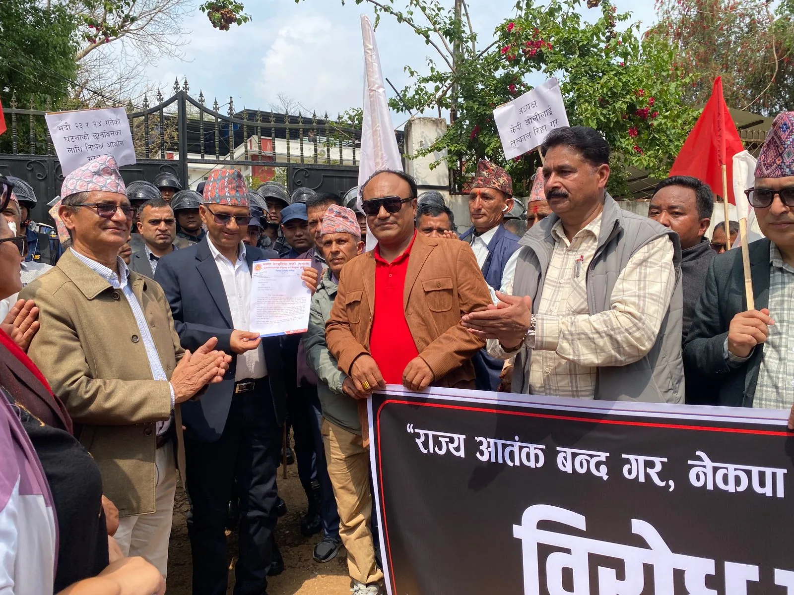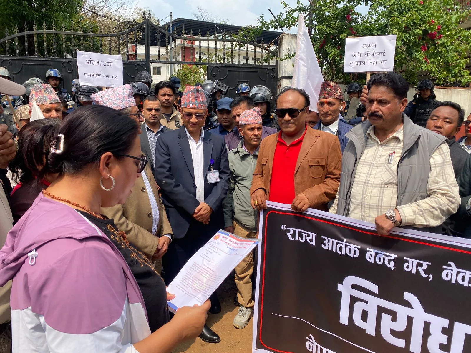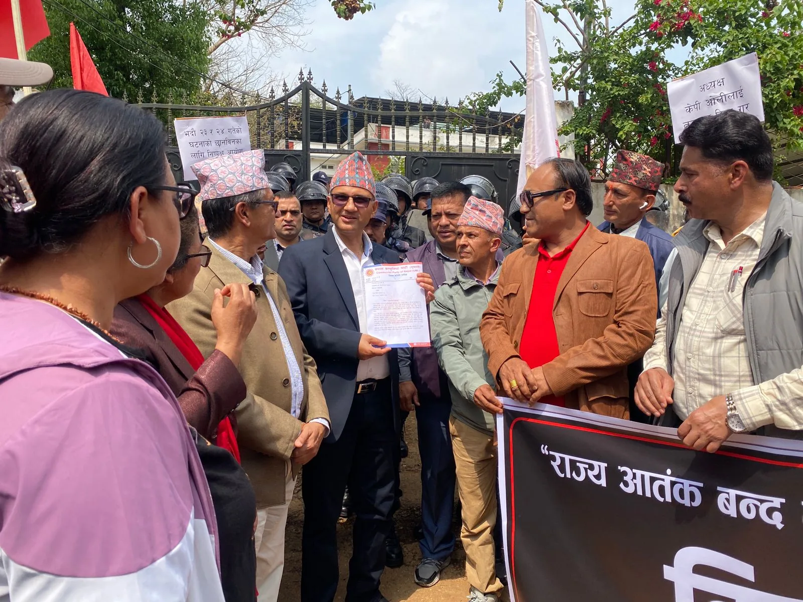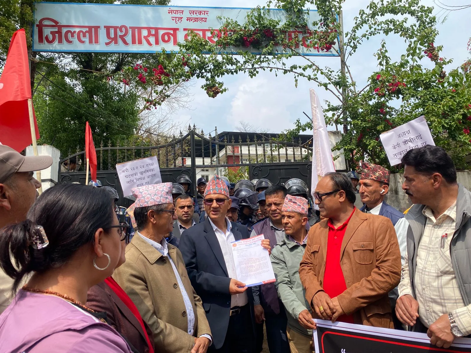 सरकारले राजनीतिक प्रतिशोधका आधारमा अध्यक्ष ओलीलाई पक्राउ गरेको आरोप लगाउँदै एमाले कार्यकर्ताहरू सडकमा उत्रिएका छन्। यसै क्रममा आज धादिङ लगायत देशका सबै ७७ वटै जिल्ला प्रशासन कार्यालयमार्फत सरकारलाई ज्ञापनपत्र बुझाइएको छ । एमालेले यस कदमलाई लोकतन्त्रमाथिको प्रहार र विपक्षी दललाई दबाउने षड्यन्त्रको रूपमा व्याख्या गर्दै ओलीको तत्काल रिहाइको माग गरेको छ ।